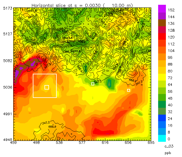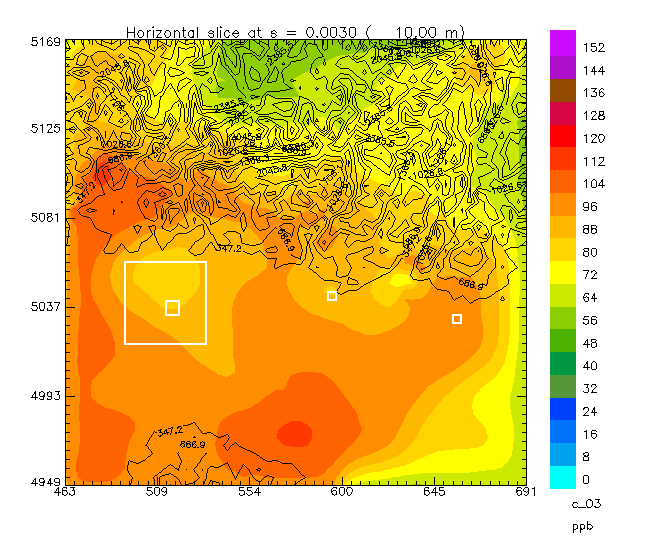 Queste informazioni sono state quindi forniti a due modelli meteorologici diagnostici: MINERVE (Geai, 1987) e CALMET (Scire et al., 1990) che sono stati utilizzati come segue: MINERVE è stato utilizzato per costruire i campi di background adattando le analisi fornite dal modello ECMWF alla topografia locale. CALMET è stato quindi applicato al fine di rendere consistenti i campi di background così ottenuti con le informazioni sperimentali disponibili e di stimare i parametri turbolenti necessari al funzionamento dei modelli di ozono. La metodologia utilizzata per derivare i campi meteorologi è descritta in dettaglio in Pirovano et al. (1999).